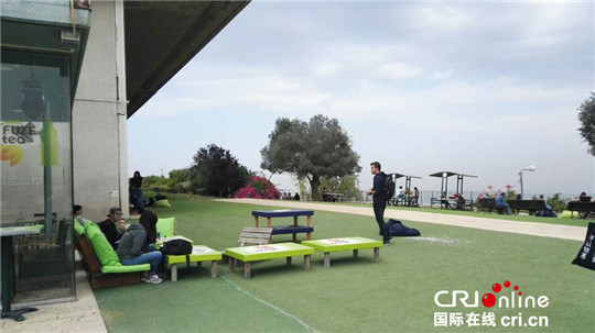 同學們在海法大學校園草坪上