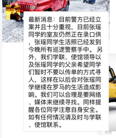 羅馬華僑自發(fā)組建“找人群”,竭力尋找失聯(lián)女生,搜尋有關(guān)信息