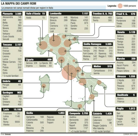 米蘭地區(qū):零零碎碎分布著約30個難民營地