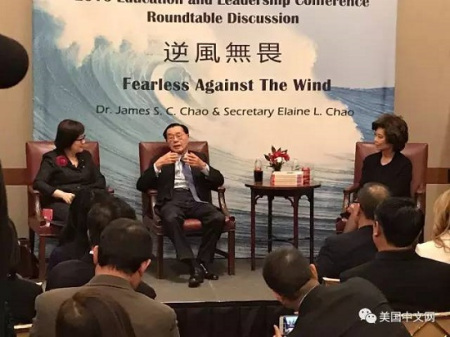 中國僑網(wǎng)12月13日電 據(jù)美國中文網(wǎng)消息,在華人的世界里,“船王”趙錫成和他的家庭,是一個大寫的傳奇。美國當?shù)貢r間12月10日,趙錫成受邀出席國際領袖基金會暨紐約青年企業(yè)家俱樂部紐約2016年年會,近來因為聯(lián)邦交通部長提名而備受關注的長女趙小蘭也陪著父親,帶著趙錫成的傳記《逆風無畏(Fearless Against the Wind)》,在現(xiàn)場分享趙家的奮斗史,并一起接受美國中文網(wǎng)的專訪。