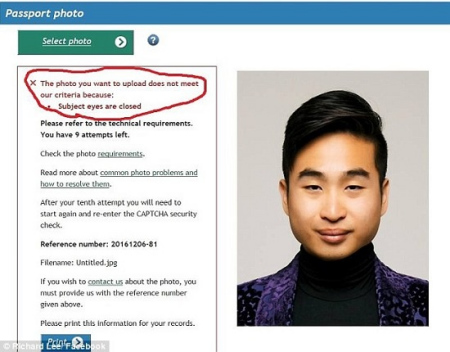 尷尬事年年有,2016年,這事兒最尷尬。竟然有人更換護(hù)照時(shí)因眼小被拒?這事兒發(fā)生在新西蘭華裔Lee身上,他在網(wǎng)上申請(qǐng)更換護(hù)照,但上傳照片不合規(guī)定,原因是系統(tǒng)提示他“閉著眼睛”。幾番周折最后通過(guò)。Lee把此番遭遇發(fā)到網(wǎng)上,就有網(wǎng)友說(shuō):“現(xiàn)在連機(jī)器都開(kāi)始看臉了,真是個(gè)看臉的時(shí)代”。不過(guò)Lee并不在意這件事,只是覺(jué)得搞笑。