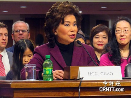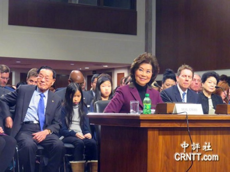 當(dāng)天趙小蘭的助威親友團(tuán)相當(dāng)強(qiáng)大。89歲的老父親趙錫成、妹妹趙小梅及其雙胞胎外甥女一直坐在趙小蘭身后,還有不少華人社區(qū)的僑領(lǐng)也前來(lái)助威。許多美國(guó)產(chǎn)業(yè)組織、行業(yè)協(xié)會(huì)和亞裔團(tuán)體,紛紛致函國(guó)會(huì),對(duì)趙小蘭出任交通部長(zhǎng)表示支持。