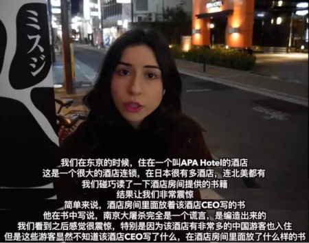 @千火翎:kat&sid,感謝你們,感謝你們的正直、客觀和勇敢,因?yàn)闆]去過日本,無法對(duì)日本當(dāng)今的人和國(guó)家作出評(píng)價(jià),但因?yàn)橛心銈兊膸椭?,我們將不?huì)讓一個(gè)對(duì)中國(guó)毫無尊重的人從我們這里得到任何利益,也希望更多的人能夠看到這個(gè)視頻,(不要住日本的APA HOTEL!),真的非常感謝你們!support you guys forever!
