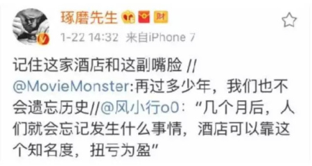 還有網(wǎng)友表示,“嗯,我們只會(huì)記得酒店名字,因?yàn)橐涀〗^對(duì)不會(huì)去這家破酒店?!?“說(shuō)什么幾個(gè)月后就會(huì)忘記,那看來(lái)我有必要每個(gè)月轉(zhuǎn)發(fā)一次了”。