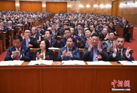 3月11日,全國(guó)政協(xié)十二屆五次會(huì)議在北京人民大會(huì)堂舉行第四次全體會(huì)議,趙陽(yáng)委員發(fā)言時(shí),稱贊列席會(huì)議的海外華僑華人。中新社記者 韋亮 攝