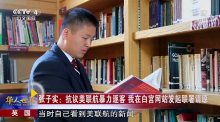 據(jù)美國(guó)《紐約時(shí)報(bào)》網(wǎng)站4月19日?qǐng)?bào)道,一位亞裔男乘客4月11日被芝加哥航空警察從美聯(lián)航飛機(jī)強(qiáng)行拖離的事情傳遍網(wǎng)絡(luò),不少媒體在早期報(bào)道中都不準(zhǔn)確地指出了這名乘客的華人身份,張子實(shí)稱“我當(dāng)時(shí)看到這個(gè)現(xiàn)象,就感覺(jué)比較氣憤,義憤填膺”。于是他匆匆寫(xiě)了一份請(qǐng)?jiān)笗?shū),要求美國(guó)聯(lián)邦政府調(diào)查此事,并借鑒黑人平權(quán)運(yùn)動(dòng)“Black Lives Matter”(黑人的命也是命)的口號(hào)寫(xiě)上“Chinese Lives Matters”(華人的命也是命)的標(biāo)簽,發(fā)在了美國(guó)白宮的網(wǎng)站上。隨后他在自己的知乎和微博賬號(hào)上發(fā)布了請(qǐng)?jiān)竷?nèi)容和鏈接,呼吁大家簽名、轉(zhuǎn)發(fā)。