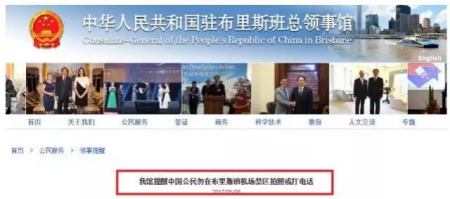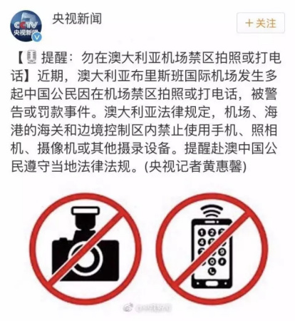 中國駐布里斯班總領(lǐng)館也就此發(fā)出了通知提醒中國公民勿在布里斯班機場禁區(qū)拍照或打電話: