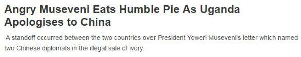 “穆塞韋尼總統(tǒng)感到丟臉,烏干達(dá)向中國道歉。”全非新聞網(wǎng)這樣報(bào)道稱。