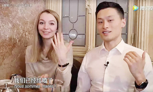 “我叫孫任之。我叫寶琳,我們已經(jīng)結(jié)婚了!”在“孟游巴黎”拍攝的一部5分鐘的視頻里,孫任子、寶琳獻(xiàn)香吻、秀恩愛。