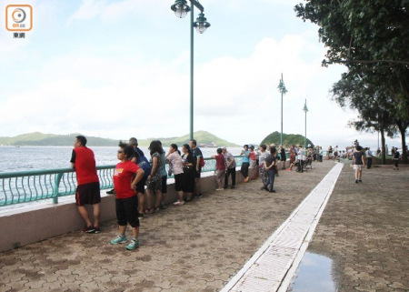 瀑布灣公園街坊黃先生,約早上七時(shí)專程帶望遠(yuǎn)鏡來等遼寧艦,他指今日放假,覺得中國(guó)首艘航母來港好感動(dòng),是中國(guó)的軍事武器來港,同以前看美軍的艦艇感覺不同。