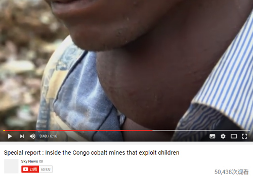 多森和理查德是一家英國(guó)媒體攝制的視頻中的人物。大雨磅礴,他們?cè)趧偣?金)鈷礦區(qū)勞作,用孱弱的肩膀扛起裝滿礦石的麻袋;他們蹲在地上,用臟兮兮的小手篩選礦石……像他們這樣的“童工”沒(méi)有鞋,沒(méi)有任何保護(hù)措施,最小的4歲。悲慘的不止孩子,還有人因喝了被污染的水喉嚨上長(zhǎng)了腫瘤。