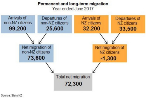 數(shù)據(jù)顯示,一年來,新西蘭入境移民(指生活、工作、學(xué)習(xí)超過一年的入境者)數(shù)量為131,400人,達(dá)到歷史新高,同期離境移民數(shù)量為59,100人。兩項(xiàng)之差,凈增移民數(shù)量為72,300人,同樣為歷史最高水平。