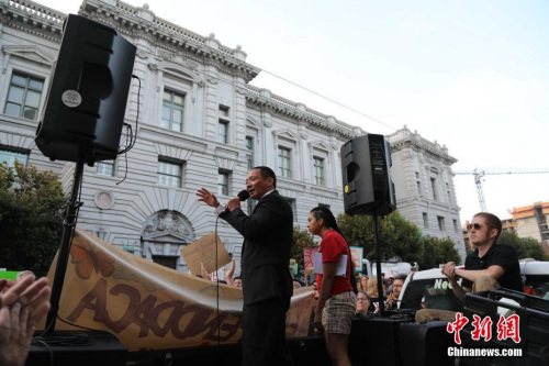 圖為美國舊金山亞太裔無證移民參加示威抗議活動。