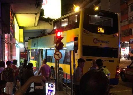 涉案E21A路線城巴由逸東開往愛民,途經(jīng)深水埗及旺角等區(qū)域,行至長沙灣道及欽州街交界時(shí)懷疑失控,撞向行人路,車頂撞向大廈檐篷。
