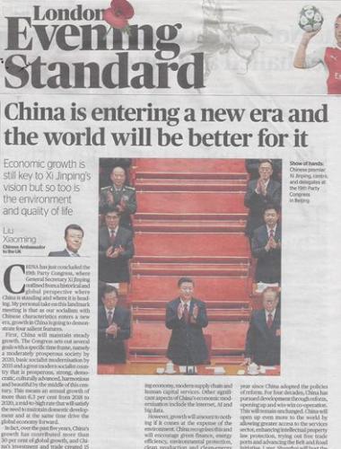 中新網(wǎng)倫敦11月3日電 (記者 張平)英國(guó)主流媒體《旗幟晚報(bào)》3日在紙質(zhì)版和網(wǎng)絡(luò)版同時(shí)刊登中國(guó)駐英國(guó)大使劉曉明的署名文章《進(jìn)入新時(shí)代的中國(guó)將給世界帶來(lái)更多福祉》。
