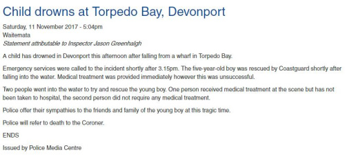 報(bào)道稱,這起事故發(fā)生于當(dāng)?shù)貢r(shí)間11日下午3時(shí),地點(diǎn)是奧克蘭北岸Devonport的Torpedo Bay。