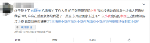 網(wǎng)友爆料在柬埔寨海關(guān)被索要小費(fèi)的遭遇。