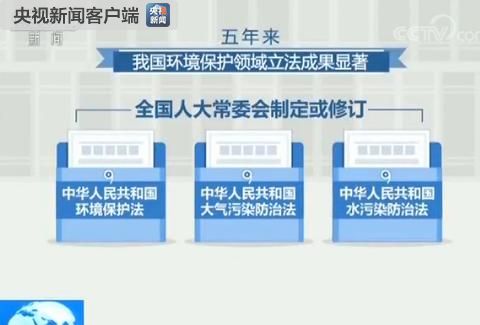 五年來,我國環(huán)境保護領域立法成果顯著,全國人大常委會制定或者修訂了《環(huán)境保護法》、《大氣污染防治法》、《水污染防治法》(《野生動物保護法)等有關生態(tài)文明建設的法律近20部。為環(huán)境保護、污染防治提供了堅實的法律保障。