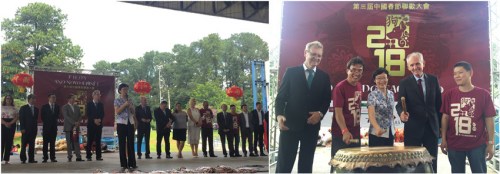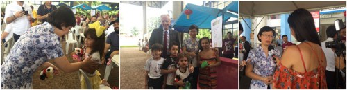 華人華僑與當(dāng)?shù)孛癖姅?shù)百人出席。陳佩潔與市長(zhǎng)一同向現(xiàn)場(chǎng)民眾和小朋友送上總領(lǐng)館帶去的中國(guó)結(jié)和絨熊貓,總領(lǐng)館準(zhǔn)備的文化書(shū)籍也被索取一空。
