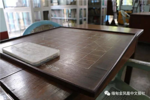 圖書館藏有中緬英三種語(yǔ)言的4萬(wàn)多本書籍和4萬(wàn)多張光碟。水滸傳連環(huán)畫、緬甸法律法規(guī)匯編、世界文學(xué)、音樂(lè)、宇宙學(xué)……他們羼雜在一起,書脊上沒(méi)有圖書編號(hào)。最新的書籍停留在2012年華僑捐贈(zèng)的“莫言諾貝爾獲獎(jiǎng)作品”。書架旁取書用的木質(zhì)樓梯,會(huì)妨礙到日常清掃,上一次使用它是幾年前有人想要翻閱書架最上層的“中國(guó)近代文學(xué)”。角落里棋盤的楚漢河界已模糊,同頭頂發(fā)黃的燈管、身邊灰白的塑料凳一樣,它們像是從上世紀(jì)的時(shí)間軌道里掉落了出來(lái),不斷褪色,又凝固在這里。