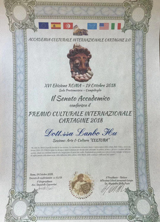 意大利國(guó)際文化學(xué)院授予華人胡蘭波迦太基文化貢獻(xiàn)獎(jiǎng)