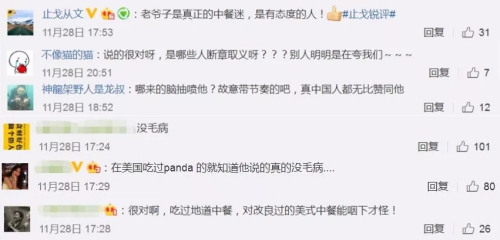 齊默恩的道歉引發(fā)了網(wǎng)友的激烈討論。在中國,有網(wǎng)友力挺齊默恩稱:“老爺子是真正的中餐迷,是有態(tài)度的人!”