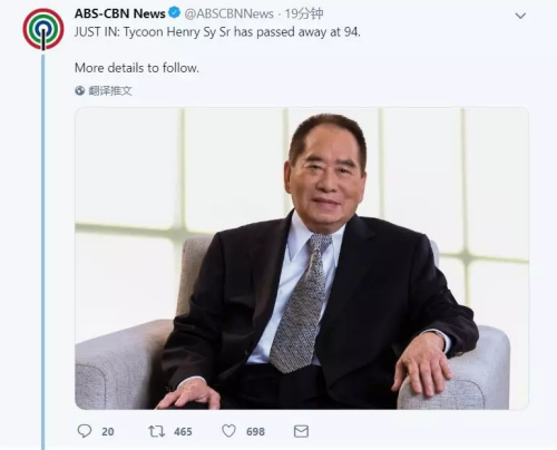 當(dāng)?shù)貢r(shí)間19日,SM集團(tuán)在一份聲明中宣布祖籍晉江的菲律賓首富施至成去世,享年94歲。