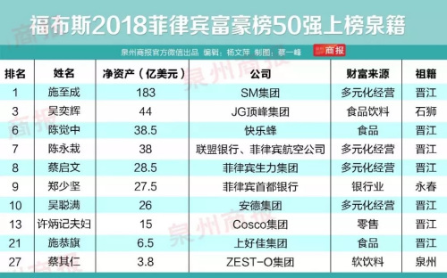 2018年9月7日,施至成以183億美元財(cái)富連續(xù)11年問(wèn)鼎菲律賓首富。
