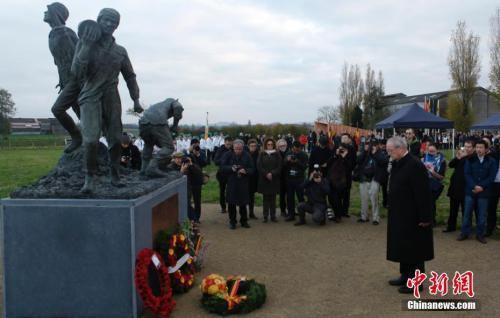 資料圖片:當?shù)貢r間2017年11月15日,一戰(zhàn)華工青銅紀念雕像在比利時西部與法國接壤的波普林格市正式落成。中新社記者 德永健 攝