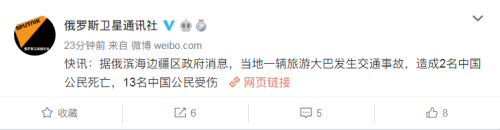 俄羅斯一旅游大巴發(fā)生交通事故 致2名中國公民死亡