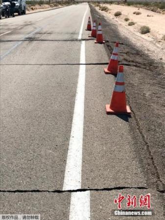 圖為加州里奇雷斯特178號高速公路,地震導(dǎo)致路面出現(xiàn)明顯裂痕。