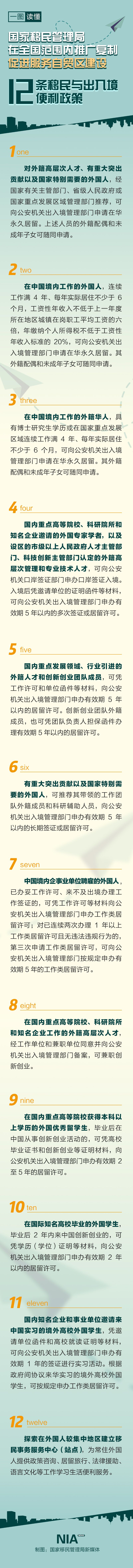 國家移民管理局推12條移民與出入境便利政策 一圖讀懂