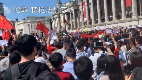 當?shù)貢r間17日,在英國倫敦和愛丁堡的當?shù)貎S胞和中國留學生自發(fā)上街應對香港激進示威者集會。學生們高唱國歌,喊出“反對暴力”、“一個中國”、“我們愛中國,我們愛香港”的口號。