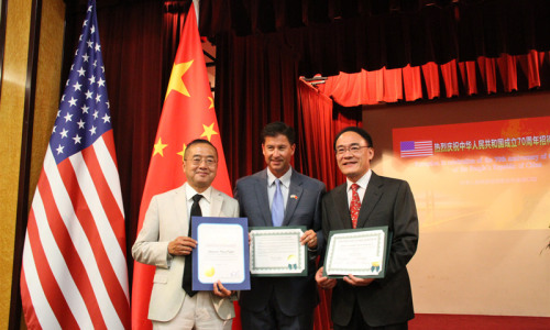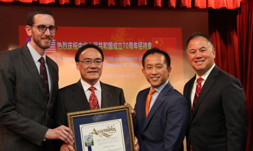 威善高、丁右立和邱信福三位議員發(fā)表了熱情洋溢的講話,祝賀中華人民共和國成立70周年,表示加州各界愿與中方共同努力,進(jìn)一步推動(dòng)雙方各領(lǐng)域的友好交流和務(wù)實(shí)合作。