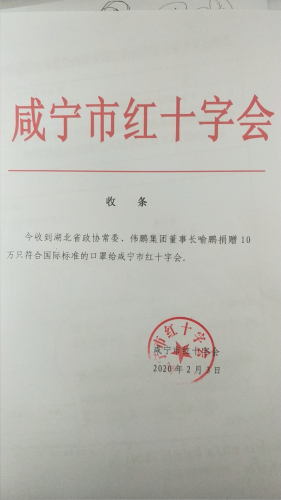 他還于第一時間出資1000余萬元,其中:100萬元捐贈武漢市東湖新技術開發(fā)區(qū)紅十字會,100萬元助力武漢亞心總醫(yī)院一線醫(yī)護人員抗擊新型冠狀肺炎,捐贈超過800萬元物資用于武漢市東湖新技術開發(fā)區(qū)、江夏區(qū)、湖北省黃岡市、團風縣等地區(qū)疾病防控中心,專門用于支持預防新型冠狀病毒感染的肺炎疫情工作。目前已向江夏區(qū)疾病預防控制中心捐贈10萬只口罩,向黃岡市團風縣新型冠狀病毒感染的肺炎防治工作指揮部和團風縣紅十字會捐贈10萬只口罩,向孝感市慈善總會捐贈20萬只口罩,至此,喻鵬主席馳援家鄉(xiāng)疫情一線醫(yī)護人員和工作者的50萬只口罩已全部落實到位。