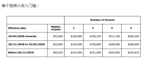 注意:擔(dān)保人需要出示證據(jù)證明3年內(nèi)的收入均達(dá)到最低要求,每年的最低要求會(huì)隨著工資中位數(shù)的改變而改變。即擔(dān)保人需要出示證據(jù)證明3年內(nèi)的收入均達(dá)到最低要求,每年的最低要求會(huì)隨著工資中位數(shù)的改變而改變,申請(qǐng)人需要分別滿足各年的最低要求。