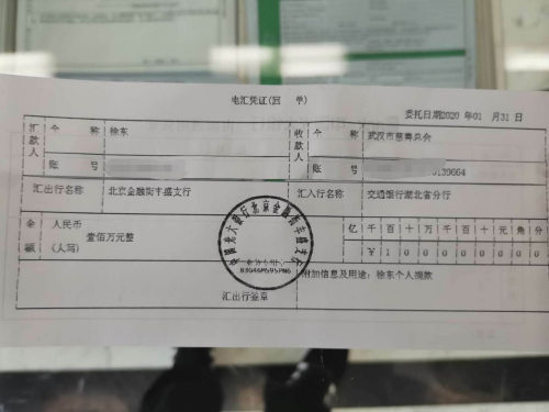 澳大利亞華僑徐東捐贈100萬元支援家鄉(xiāng)抗擊疫情