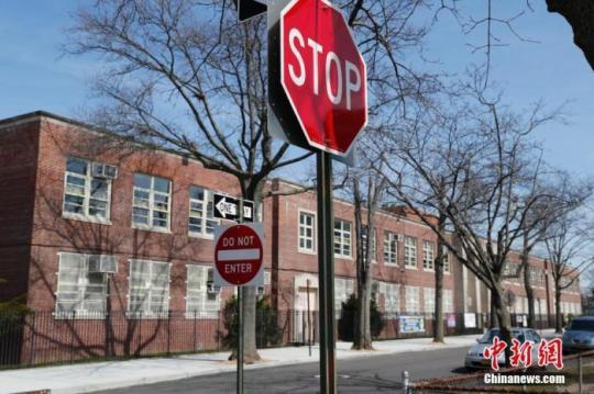 圖為美國紐約市皇后區(qū)一間關(guān)閉中的公立學校。 中新社記者 廖攀 攝