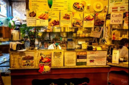 紐約曼哈頓區(qū)唐人街的地標(biāo)性中餐廳金豐大酒樓開業(yè)有48年了,酒樓內(nèi)有800個座位,在疫情期間的食材庫存仍可以供應(yīng)3000名顧客。這里平日賓客如云、人聲鼎沸。