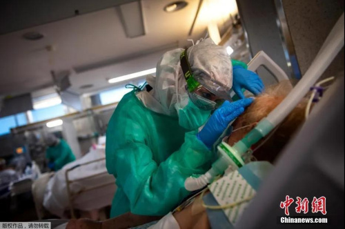 當(dāng)?shù)貢r(shí)間4月16日,在西班牙西北部維戈的Povisa醫(yī)院重癥監(jiān)護(hù)室,醫(yī)護(hù)人員在照顧新型冠狀病毒患者。