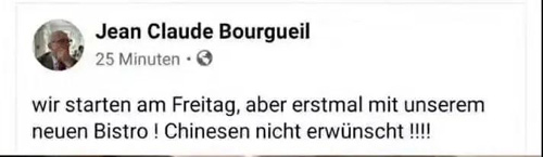 言論稱,我們周五開(kāi)業(yè),首先開(kāi)放我們的小酒館。中國(guó)人不受歡迎?。?!
