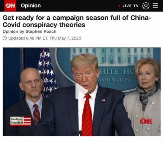 隨后美國(guó)媒體更是得到了共和黨一份57頁(yè)的“新冠病毒大全”,將以上內(nèi)容囊括其中?!肮糁袊?guó)”依然成為了共和黨的選舉策略。CNN在5月7日就評(píng)論,“準(zhǔn)備好,今年大選季將充滿(mǎn)中國(guó)和新冠肺炎的陰謀論?!?/strong>