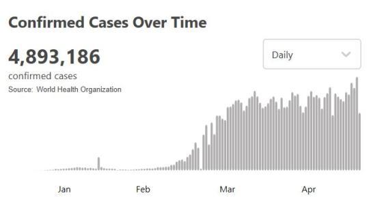 世衛(wèi)組織:全球新冠肺炎確診病例超過489萬例