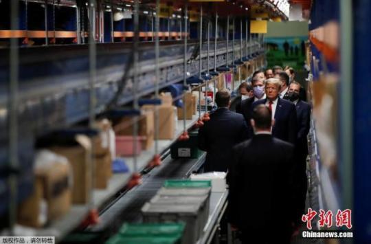 當(dāng)?shù)貢r間5月14日,美國總統(tǒng)特朗普在未戴口罩的情況下視察了賓夕法尼亞一家醫(yī)療物資分配中心,在人群中尤其顯眼。