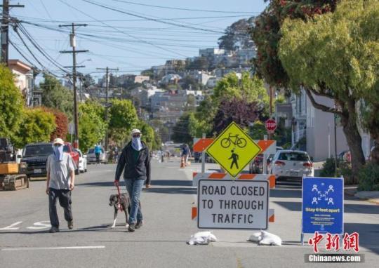 當(dāng)?shù)貢r間5月24日,美國舊金山桑切斯路僅對自行車以及行人開放,以保障市民有更多的空間保持“社交距離”。中新社記者 劉關(guān)關(guān) 攝