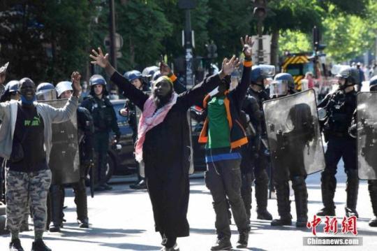 當(dāng)?shù)貢r間5月30日,巴黎上千人違反集會禁令上街示威游行,大批警察趕到現(xiàn)場驅(qū)散示威者,逮捕近百人。 中新社記者 李洋 攝