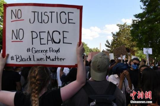 在明市追悼會(huì)進(jìn)行的同時(shí),成千上萬(wàn)的人們聚集在華府的馬丁路德金雕像前,紀(jì)念弗洛伊德的同時(shí),呼吁種族正義。