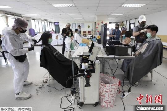 資料圖:疫情下的泰國理發(fā)店。