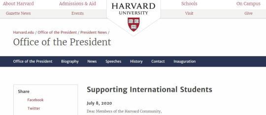 △哈佛大學(xué)校長(zhǎng)辦公室發(fā)聲支持留學(xué)生