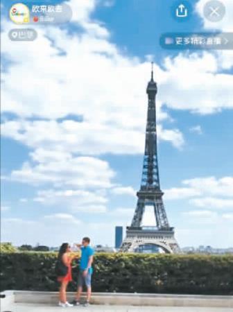 “歐來(lái)歐去”在法國(guó)巴黎埃菲爾鐵塔進(jìn)行直播的截屏。